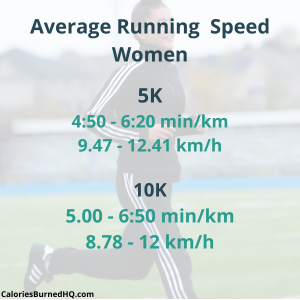 The average running speed km/h for women will vary but will be about 9.7 to 11.3 km/h.