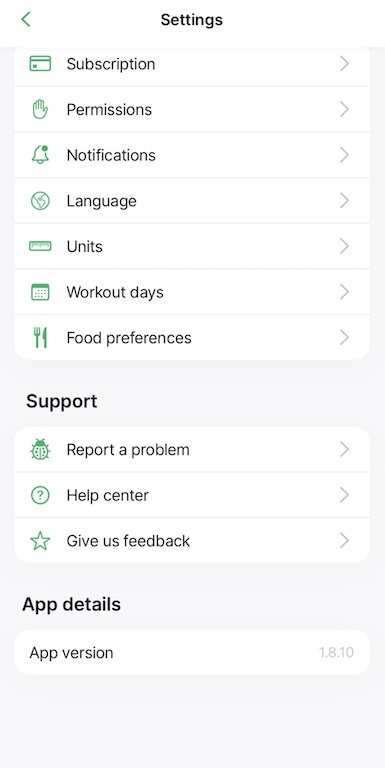 App features — the section is the most comprehensive and covers everything related to the features such as how to navigate the app, how to reset your meal plan, and more.