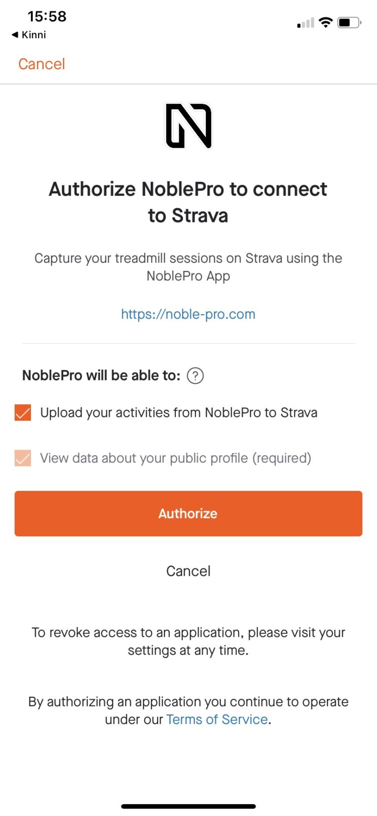 You’ll be prompted to authorize NoblePro to connect to Strava