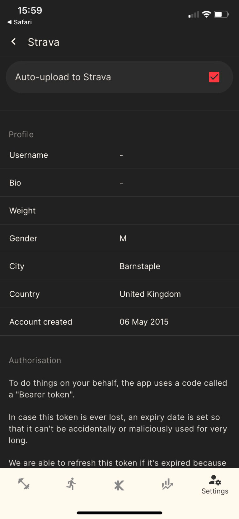 At this point you can tick the box to Auto-upload to strava. This will then push every workout you complete to Strava.